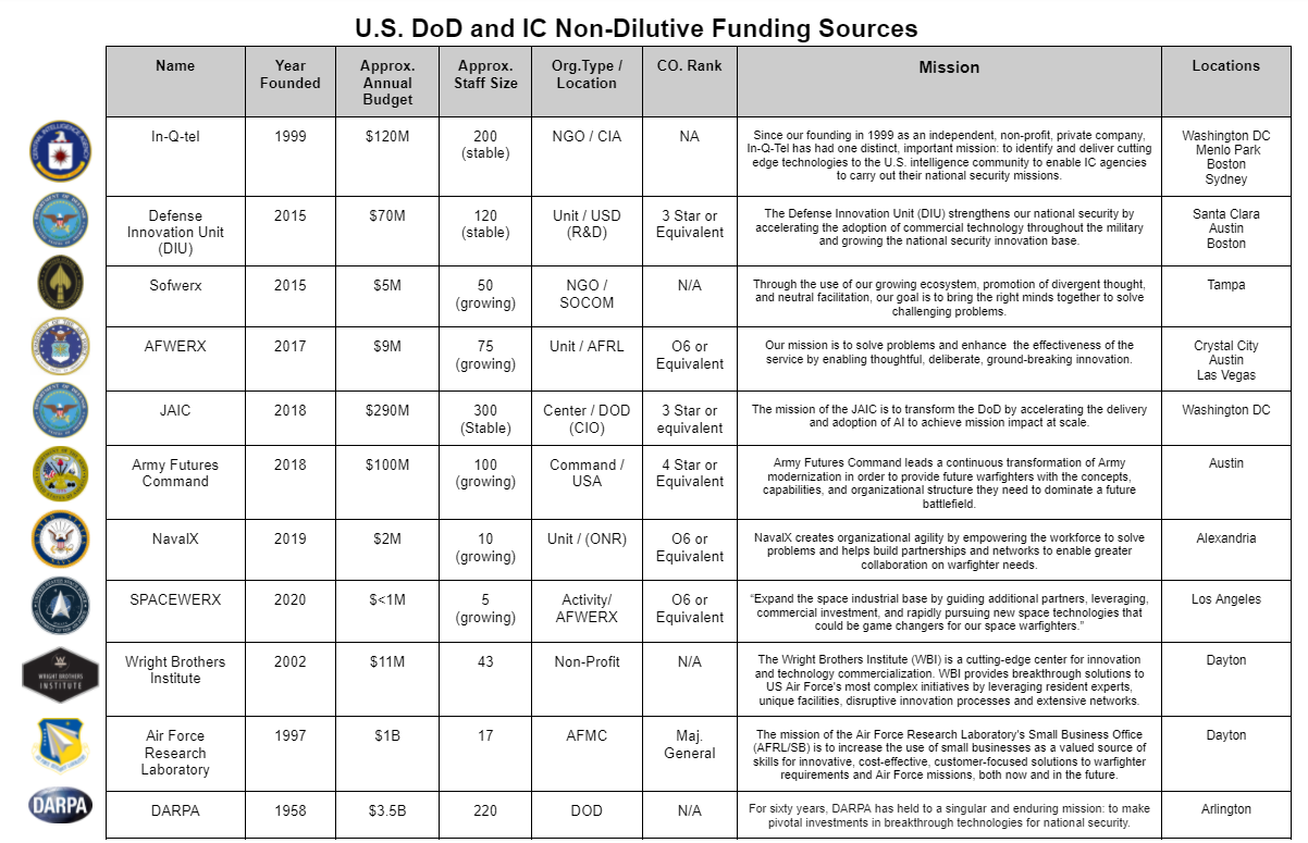 U.S. DoD & IC Non-Dilutive Funding Sources: