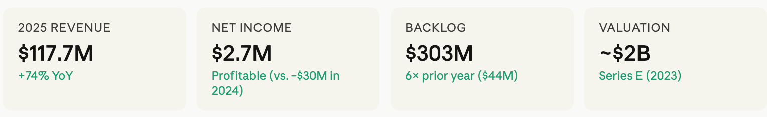 Revenue trajectory: $30.5M (2022) → $67.6M (2024) → $117.7M (2025)